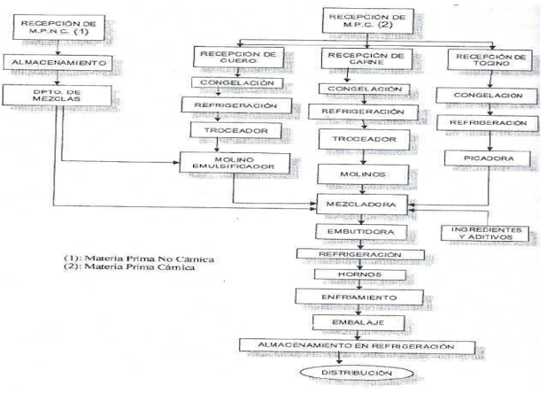 En las empresas cárnicas se dispondrá de un diagrama de flujo (gráfico o visual) por etapas, al cual tengan acceso l@s operari@s de tal forma que no haya ninguna duda en cómo proceder en cada momento (dependiendo del tipo de pieza y de la etapa dentro del proceso) en su colocación, también deberán aparecer todas las posibles variables que puedan existir en cada situación diferente.